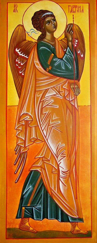Luc 1,19 : « L’ange lui répondit : Moi je suis Gabriel et je me tiens devant Dieu, et j’ai été envoyé pour te parler et t’annoncer ».